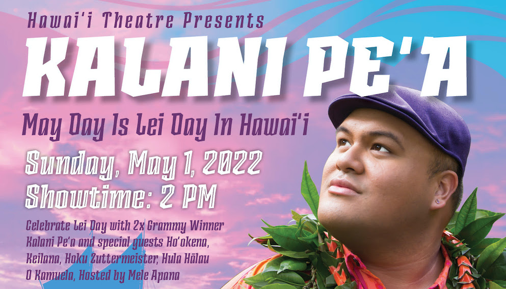 Hawaii Theatre 1130 Bethel Street, Honolulu, HI, United StatesTwo-time Grammy Award winner Kalani Pe’a will headline Hawaii Theatre’s May Day Is Lei Day concert on May 1. At this special concert Kalani will perform brand new original compositions off of his latest release "Kau Ka Pe'a". Hosted by Mele Apana and featuring special guests Ho'okena, Keilana, Hoku Zuttermeister, and Hula Hālau O Kamuela. … Continue reading Kalani Peʻa: May Day Is Lei Day