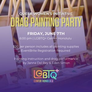 The Hawaiʻi LGBT Legacy Foundation Queer Women’s Initiative welcomes you to their very first Drag Painting Party at the LGBTQ+ Center Honolulu. Socialize from 6pm-6:30pm and then get creative under the guidance of Janna Del Rey. Join the fun and enjoy an entertaining evening (including performances by Janna Del Rey and Eden Simon), with your queer gal pals. For more information, and to purchase tickets, click here.