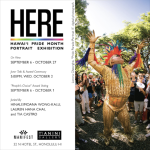 In celebration of the diverse identities in Hawai‘i, downtown-Chinatown businesses Manini Gallery and The Manifest have teamed up to present “Here: Hawai‘i Pride Month Portrait Exhibition.” The juried group show, on view September 6 – October 27, features the works of 13 Hawai‘i-based artists, exploring the concept of queer representation. Mark your calendars on Wednesday, October 2 for a Juror Talk and Award Ceremony, a night of celebration, creativity, and insight. Learn more about the juror’s process in selecting artwork, and show your appreciation the featured artists. Visit The Manifest from September 6 – October 1 to vote for your favorite piece to help select the Peoples’ Choice Awardee.